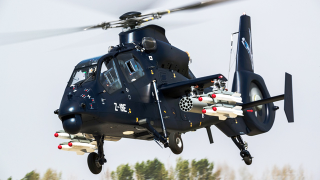 5月18日上午,由中国航空工业哈飞自主研制的直-19E出口型武装直升机在哈尔滨成功首飞。