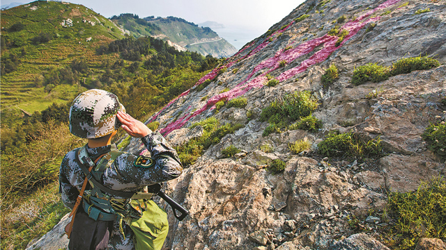 春日清晨,台山岛海风阵阵,乍暖还寒。迎着朝霞,执行巡逻查滩任务的东部战区陆军某海防旅海防一连巡逻分队官兵出发了。